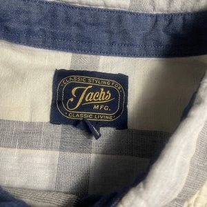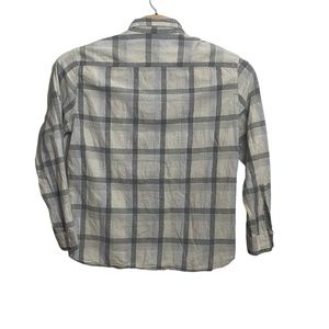 JACHS Men's Large Plaid Long Sleeve Gray Off White Button Down Shirt Pockets