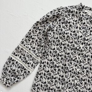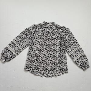 Haven & Blair Floral V-Neck Button Up Blouse Long Sleeve, Size Small