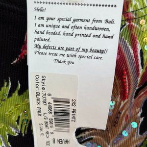 Gorgeous sequined & beaded on front, Palm fronds, multi color with black base. Very long sleeves.
