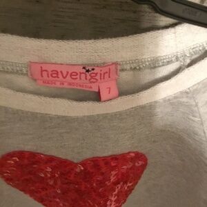 Gray size 7 sweatshirt with red sequin heart by Haven Girl.the shirt was only worn a few times and is in great condition.