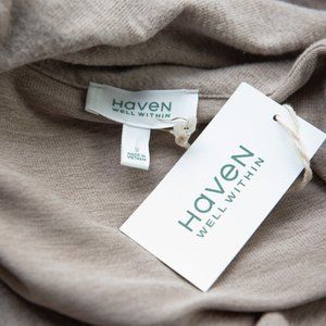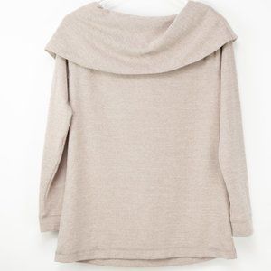 New with tags Haven Off The Shoulder Knit Top in tan size small. This soft and cozy top has an oversized fold over collar that can also be worn as a cowl neck.