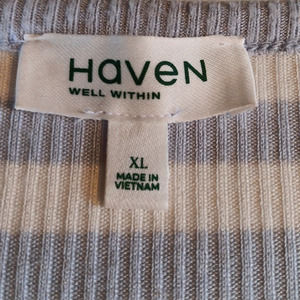 Haven Well Within | Blue & White Striped Ribbed Soft Touch Button-Cuff Top
