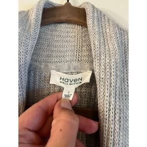 Haven Well Within Cardigan Sweater Coat Grey Open Front Loose Knit Small