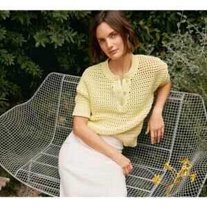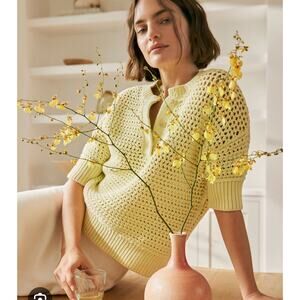 Haven Well Within Knot Stitch Henley Shoer Sleeve Sweater Butter Yellow Small