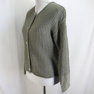 Haven Well Within Organic Cotton Linen Open Stitch Cardigan Sweater Size S Green