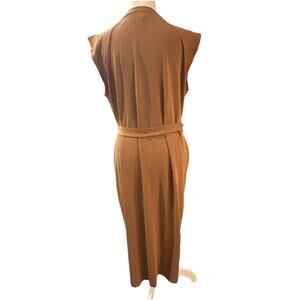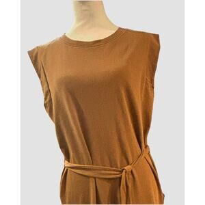 Haven Well Within Shift Dress Caramel Belted Midi Sz Lg Minimalist Office Wear