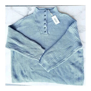 Haven Well Within Size XXL Button-Up Mock Neck Sweater in Breeze Blue NEW!