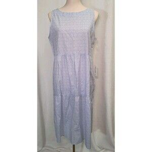 Haven Well Within Sleeveless Lightweight Tiered Midi Dress Blue White Size S