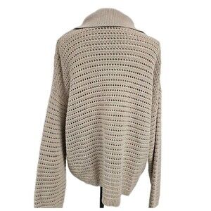 Haven Well Within V-Neck Eyelet Knit Sweater Beige Tan 100% Cotton Women’s Sz XL