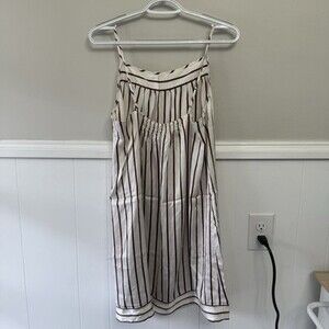 Haven Well Within Washable Silk Chemise Nightgown Lingerie Sz M Brown Stripes
