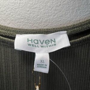Haven Well Within Women's Ribbed Sleeveless Midi Dress Olive Green Lounge New XL