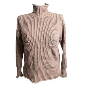 Haven Well Within Womens Rollneck Oarsman Sweater XS Taupe Chunky Knit Oversized