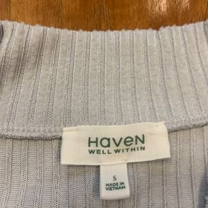 Selling a Haven Well Within cardigan sweater size small in good condition. It is a bluish grey color. Comes from clean, nonsmoking home and pre washed. Thanks for looking.