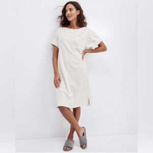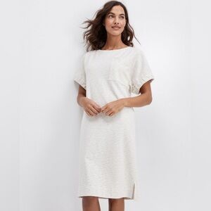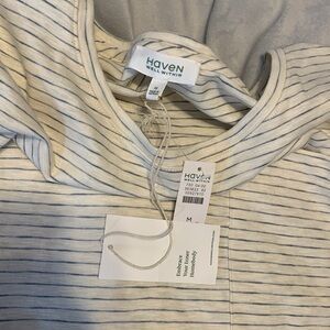 Haven well within Gathered Cuff Lounge Dress cream grey striped short sleeve med