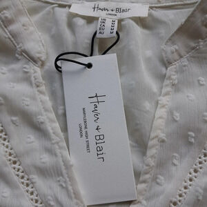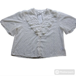 Haver & Blair Cream Lace Bell Sleeve Light Shell Buttons V neck