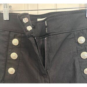 These stylish Haver & Blair London sailor pants offer a chic, maritime-inspired look. The gold button embellishments add a touch of sophistication, making them a versatile addition to a wardrobe. These pants provide a comfortable fit, perfect for a polished casual or semi-formal outfit.