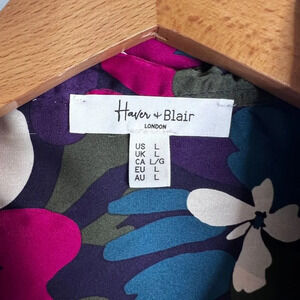 Haver & Blair London Bold Floral Silky Long Sleeve Button Front Blouse Size LG