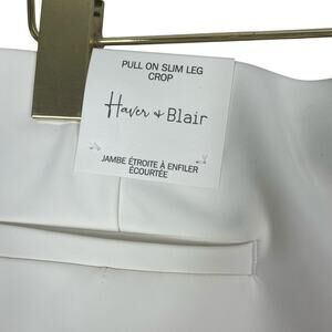 Haver & Blair London pull on slim leg crop pants. A scuba knit pant with front seam. Faux back pockets. Off white color. Size small. Please see photos for measurements.