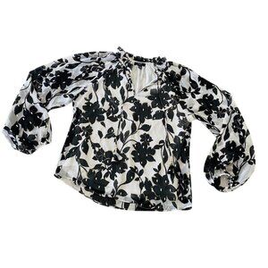 Haver London Black and White Chiffon Floral Blouse Top Size Medium