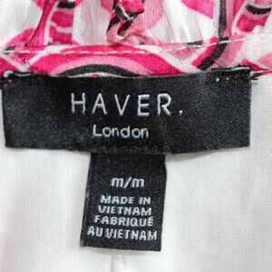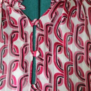 Haver London Blouse Women M Pink Red Geometric Sheer Long Sleeve Ruffle Neck Top