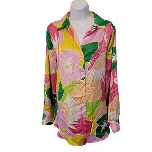 Haver London Bright Floral Button Front Shirt M Lightweight Vacation Cruise Reso