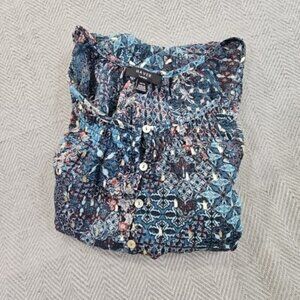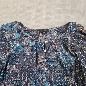 Haver London Crop Top Women's Large Blue Floral Metallic Design Long Sleeve EUC