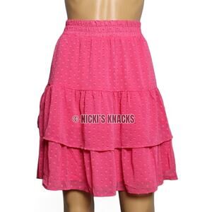 Haver London Hot Pink Swiss Dot Tiered Ruffle Mini Skirt Festival Style Size S