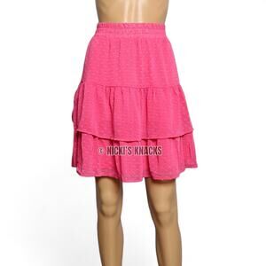 Bring bold color and flirty movement to your summer wardrobe with this hot pink tiered mini skirt from Haver London. Designed in a textured Swiss dot fabric, it features layered ruffle tiers, a comfy smocked waistband, and an easy pull-on fit. The high waisted A-line silhouette flatters effortlessly and makes it the perfect choice for festivals, vacations, or everyday summer looks.
