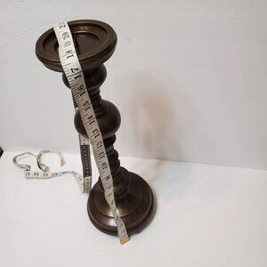 Havertys Bronze Metal Candle Holder, 18" Tall, Elegant Design Classic Pillar