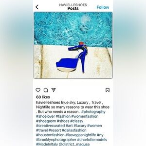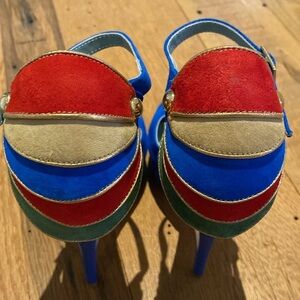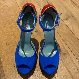 Havi Elle Rare Luxury Cobalt Blue Platform Suede PeepToe Made in Italy Heels 7.5