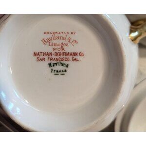 Sugar bowl lid has a repaired crack across it and handle was also repaired, otherwise, both pieces are in excellent vintage condition. Creamer marked Haviland & Co, Limoges FOR Nathan-Dohrmann Co. San Francisco, Cal.