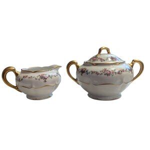 Haviland & Co Limoges Cream Sugar Bowl Gold Handles Bouquet Urn
