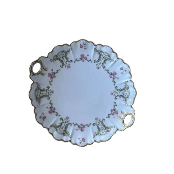 Haviland & Co Limoges Gold Handles Plate Platter Pink Roses 10.5" x 10"