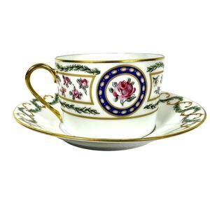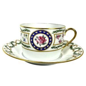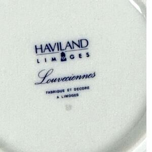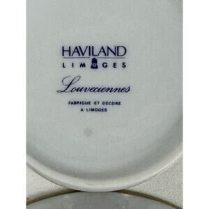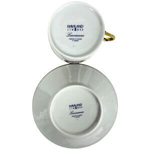 This Set of Five Flat Cups/Saucers Sets of the Haviland "Louveciennes" Limoges Pattern measure: Cup is 2.25" H x 3.25" in diameter Saucer is 1" H x 5.75" in diameter. These Cup and Saucer sets are in Pristine, Mint condition with no signs of use! These gorgeous Cups and Saucer Sets would make an elegant upscale and sought after luxury addition to your entertaining dinnerware! We invite you to look at the variety of other Louveciennes Pieces we have available in our store-please message us with any questions-if you want to bundle a number of pieces together, we will combine shipping and negotiate special pricing. Make these yours today!