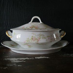 Haviland Limoges Sauce Boat & Lid w/ Attached Underplate Schleiger 161-4 *Read
