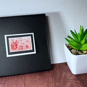SIZE: 4”x 4” x 1/2” Square Frame with New/Unused postage stamps from the United States and glass front.