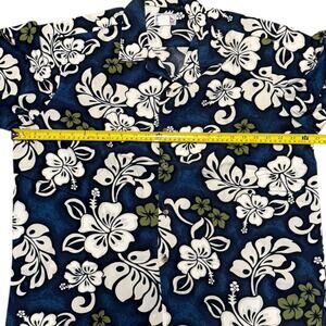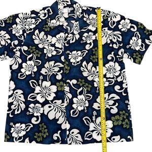 Hawaii Blue, Gray And White Floral Print Cotton Aloha Shirt Size XL
