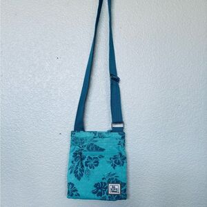 Da Kine Hawaii teal turquoise hibiscus print floral canvas crossbody bag purse in excellent like new condition. Clean nonsmoking home.