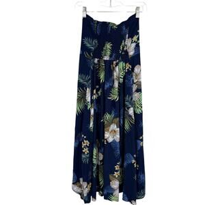 Hawaii Hangover String Halter Dress Size Small Blue Floral Rayon Hi-Lo Hem New