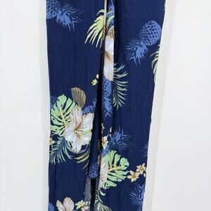 NEW Hawaii Hangover String Halter Dress Size Small Blue Floral Rayon Hi-Lo Hem