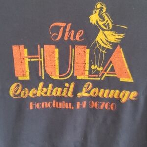 The shirt reads "The hula cocktail lounge Honolulu HI 96760.