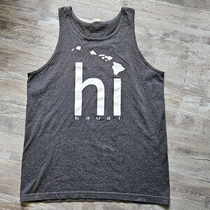 Hawaii Islands "Hi Kauai" Graphic Tank Top Large Gray Beach Vintage Muscle