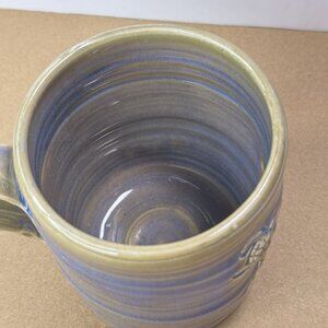 Hawaii Mug Turtles Embossed 3D Blue Khaki Ben Diller Pottery Signed 2001