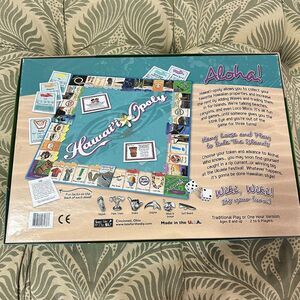 The game board is designed with a Late for the Sky brand and includes all the necessary game pieces and cards. Get ready to buy, sell, and trade your way to victory in this exciting game. Whether you're a fan of board games or Monopoly, Hawaii-Opoly is sure to provide hours of fun for the whole family.