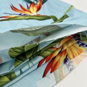 Hawaii Print Fabric Sky Blue Tropical Floral Passion Birds Of Paradise Vibrant