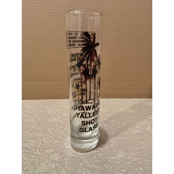 Hawaii Retro Shot Glass-WORLDS TALLEST-Black/Gold Palm Trees EUC