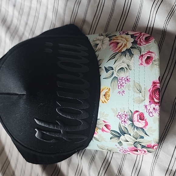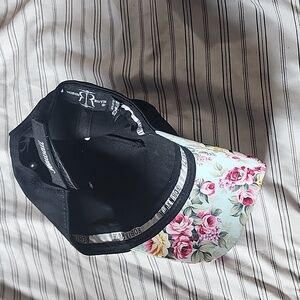 Hawaii flower brim black hat Robin Ruth velcro back hat