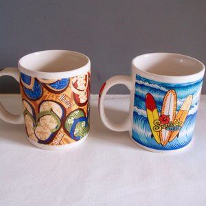 Hawaii Slippers Flop Flops Surf’s Up Surfboard Coffee Mug Set Beach Tea Souvenir