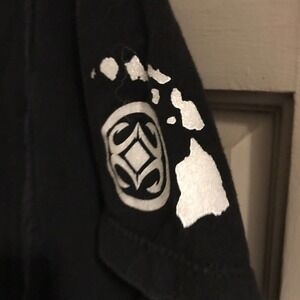The shirt is made by M & M, a trusted brand in the clothing industry. The shirt is pre-owned but still in great condition. It has a solid pattern and is not vintage. This shirt is a must-have for any man who wants to add a touch of Hawaiian culture to his wardrobe.