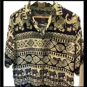 Hawaii Vintage Blue And White Elephant Print Button Up Size XL Comfort Vacay